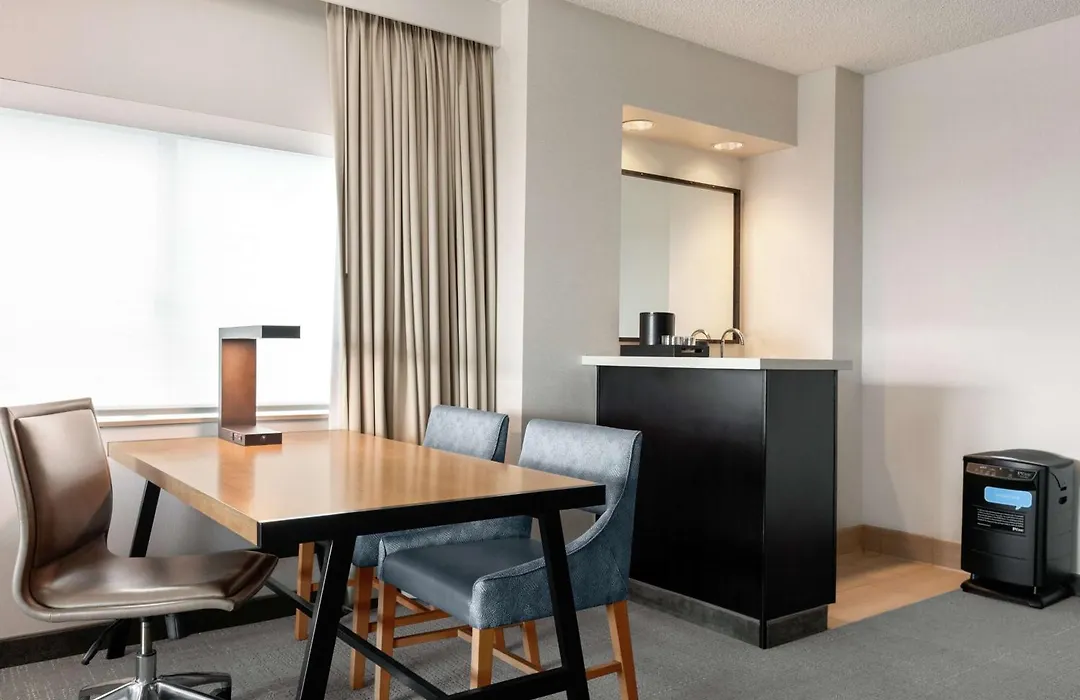 A microwave, a coffeemaker, and a refrigerator are also featured in the rooms.